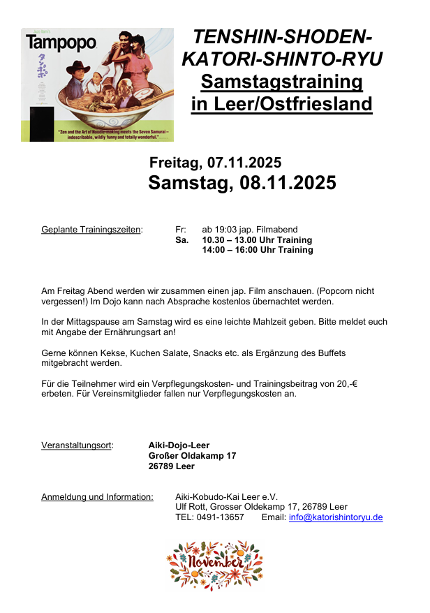 Samstagstraining in Leer/Ostfriesland (mit Filmabend)